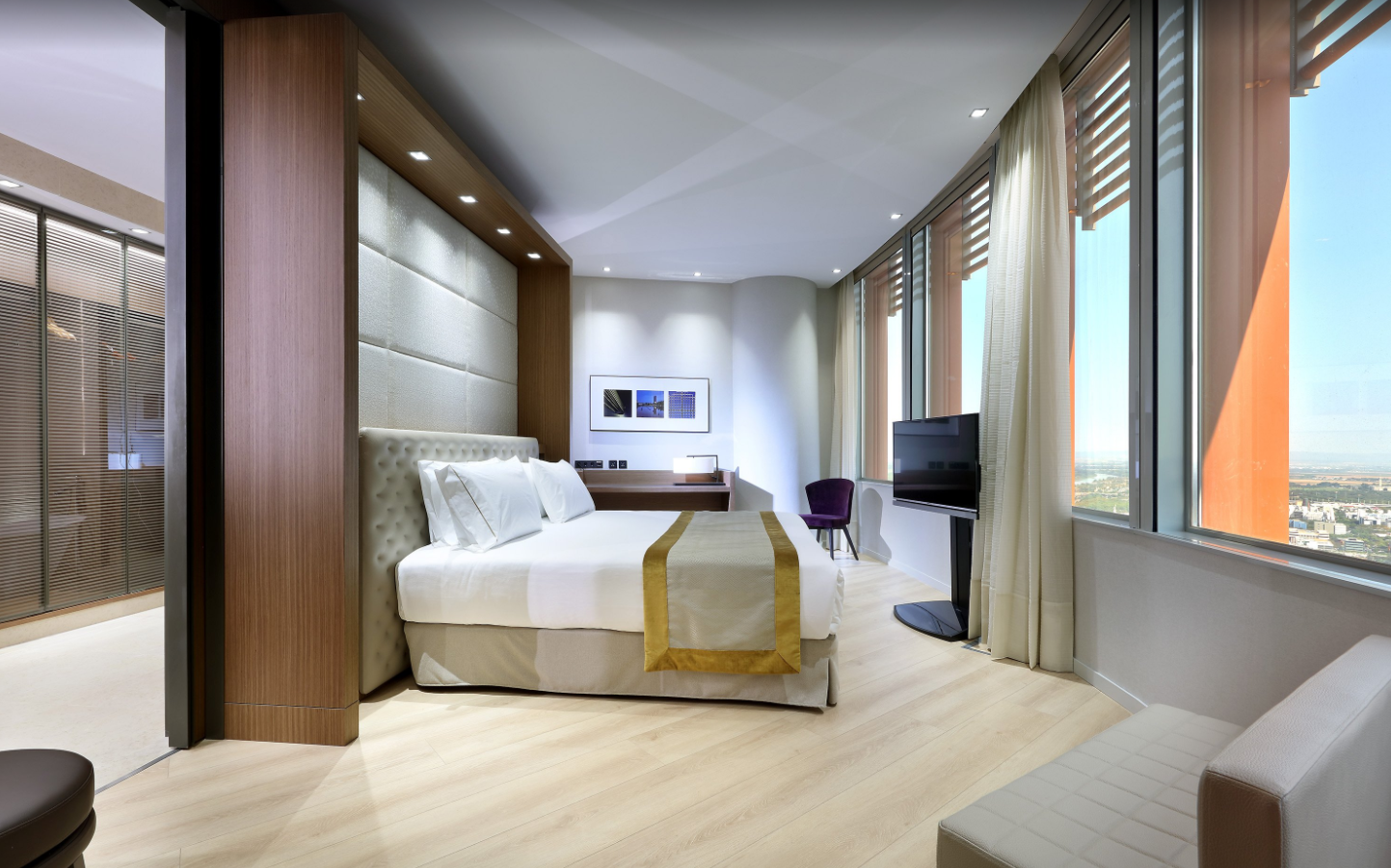 세비야 호텔 유로스타즈 토레 세비야 (Eurostars Torre Sevilla)의 객실은 거실, 침실, 욕실, 드레스룸으로 되어 있으며, 분리되어 있어 편리하고, 깨끗하게 잘 관리되어 있으며 실내 스파수영장도 잘되어 있는 세비야의 5성급 호텔체인입니다.