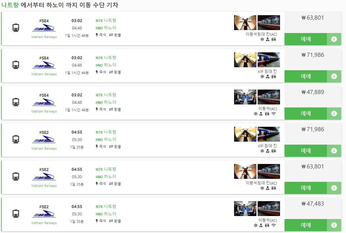 베트남여행 // 나트랑에서 하노이로 이동하는 교통편(버스와 기차, 항공편)