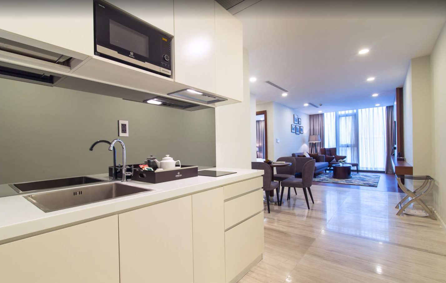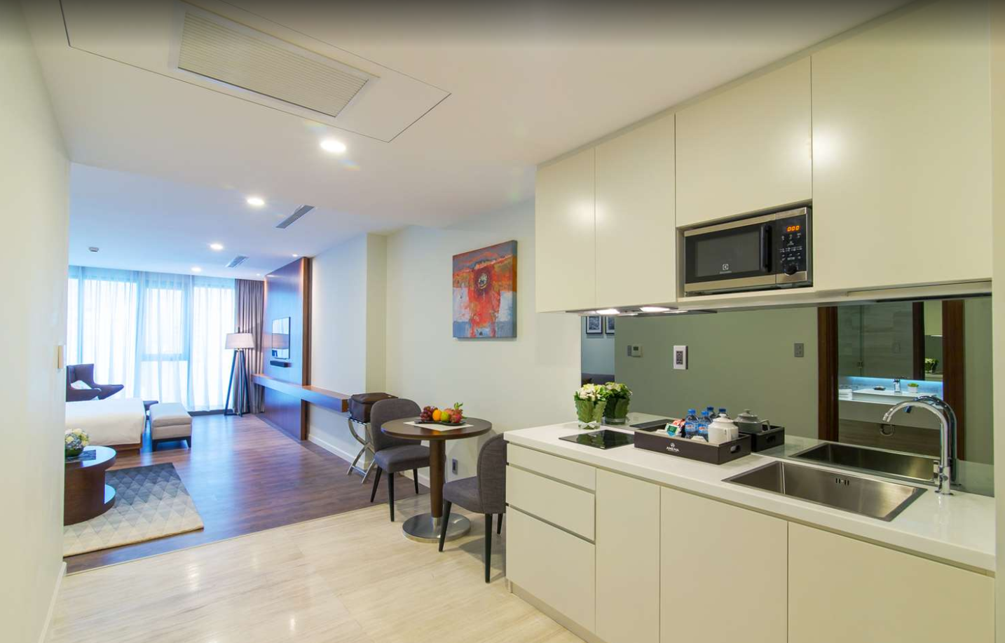 호치민호텔 아메나 레지던스 앤 스위트 매니지드 바이 멜리아 (Amena Residences & Suites Managed by Melia)의 객실은 넓고, 레지던스형 호텔로 간이주방이 구비되어 있으며, 거실, 침실 등으로 구분되어 있어 편리하게 이용하기 좋은 구조의 호치민시내 인기호텔입니다.
