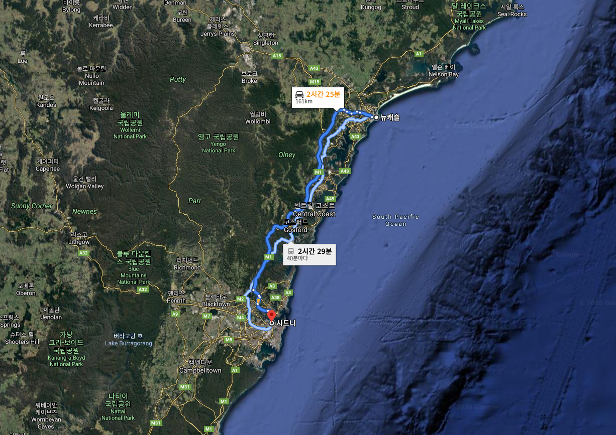 뉴캐슬(newcastle)에서 시드니(sydney)로 이동하는 교통편