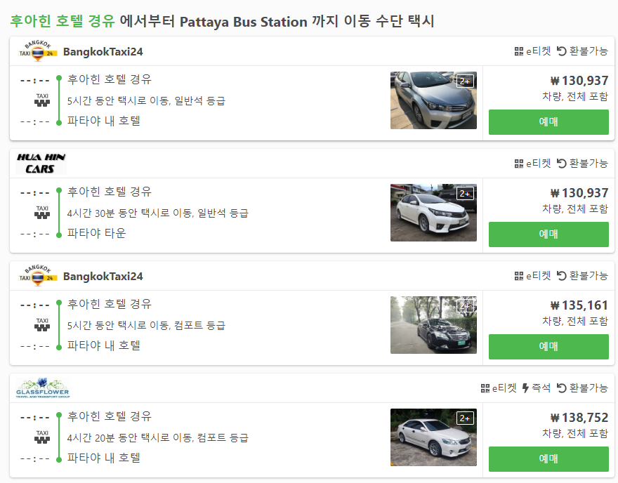 후아힌에서 파타야로 이동하는 교통편