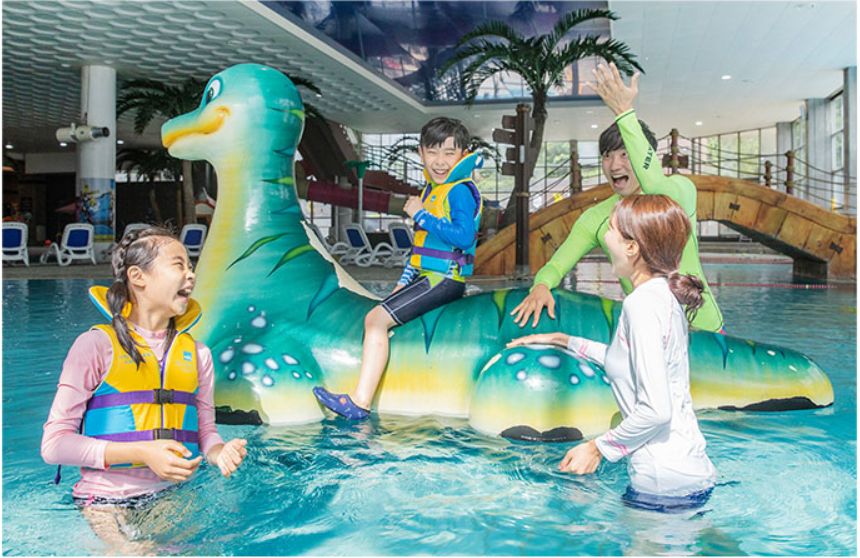천연온천수를 즐길 수 있는 실내 수영장, 어린이 물놀이풀, 유수풀, 아쿠아플레이 등 온 가족이 즐길 수 있는 스파플러스 워터파크입니다.