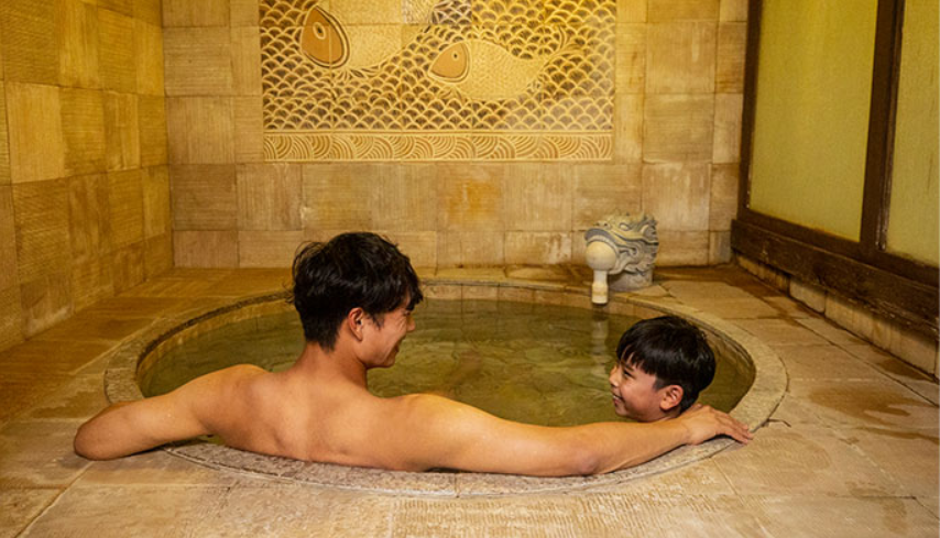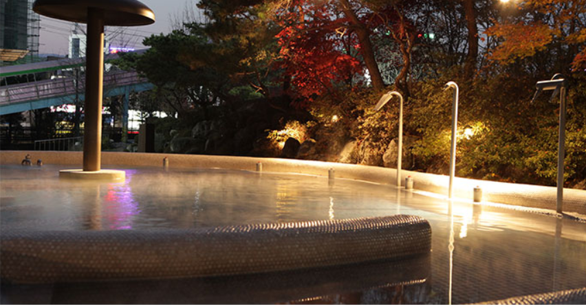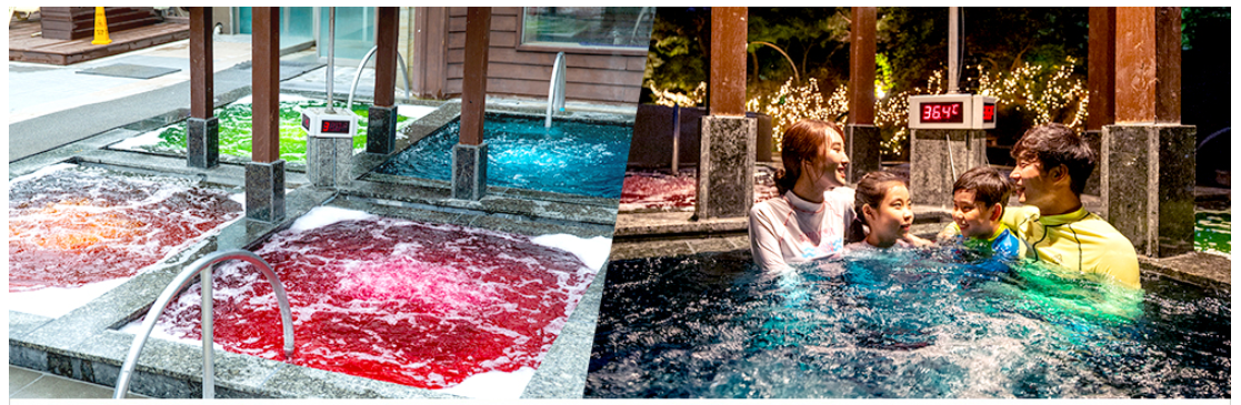 최상급 온천수가 사계절 내내 공급되는 바데풀, 유아풀, 유수풀과 국화, 창포, 와인 등 천연 성분의 노천 이벤트탕으로 구성된