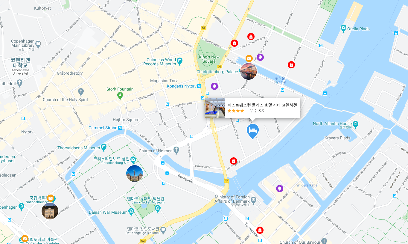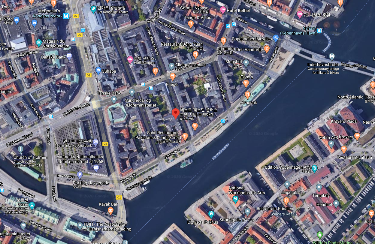코펜하겐시내의 메트로 Kongens Nytov역(1,2호선)에서 도보로 5분 이내로 가까워 여행하기 편한 베스트웨스턴 플러스 호텔 시티 코펜하겐 (Best Western Plus Hotel City Copenhagen)은 뉘하운에서 도보로 3분정도 걸리며, 코펜하겐시내의 주요관광지를 여행하기 좋은 위치입니다. 호텔주변에는 식료품가게들도 있고, 편하게 지내기 좋은 코펜하겐호텔입니다.