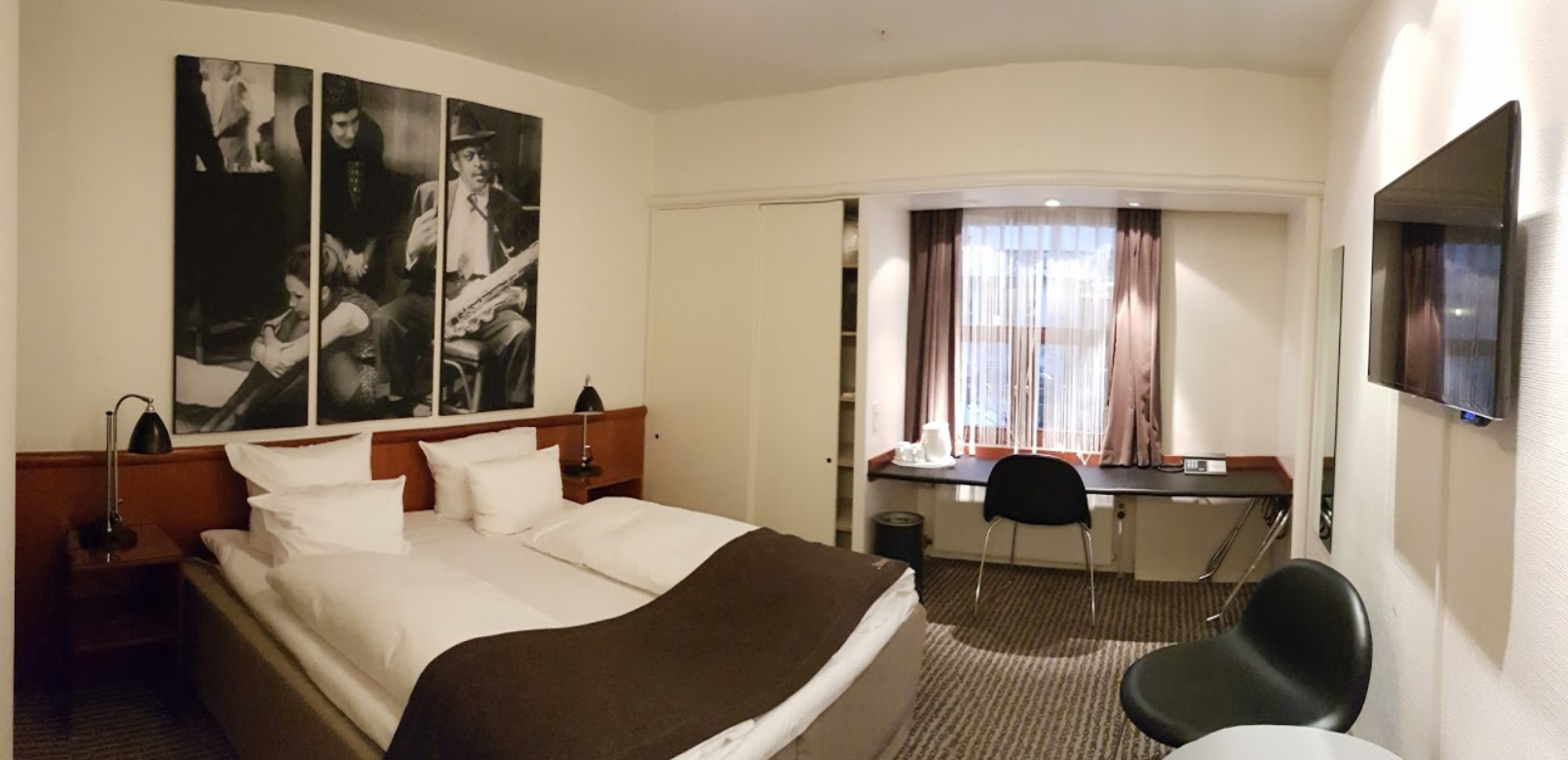작은 도시지만 이동 구간을 최우선으로 생각해서 결정한 호텔입니다. 메트로 Kongens Nytov역(1,2호선)에서 도보로 5분 이내로 가까웠고, 뉘하운에서 도보 3분 정도 걸립니다. 근처 주요 관광지까지 모두 도보로 20분이면 충분합니다. 호텔 건물 모퉁이에 식료품 가게가 있어서 생수나 과자, 쥬스 정도는 쉽게 살 수 있고, 조식은 평범, 적당했어요. 직원들은 항상 친절했고, 객실은 좁은 편이지만 구석구석 깨끗하게 잘 관리되고 있었습니다. 바닥이 조금 삐꺽대고 방음이 좀 약한 점은 단점입니다.