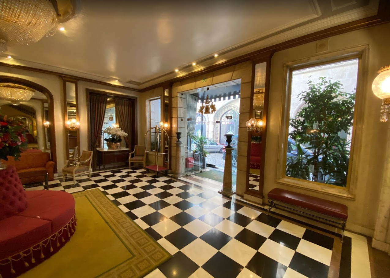 포르투갈 리스본여행의 호시오(rosio) 역 바로 옆에 있는 궁전같은 호텔 아베니다 팔라스 (Hotel Avenida Palace)는 지하철역에서 2분거리에 있음 엔티크한 분위기의 멋진 리스본호텔입니다. 아베니다 팔라스 (Hotel Avenida Palace) 호텔은 리스본의 5성급호텔로 호시우광장에 접해 있고 유명한 식당들이 주변에 많이 있습니다. 호텔객실은 천장이 높은 구조로 클래식한 가구로 인테리어 되어 있습니다.