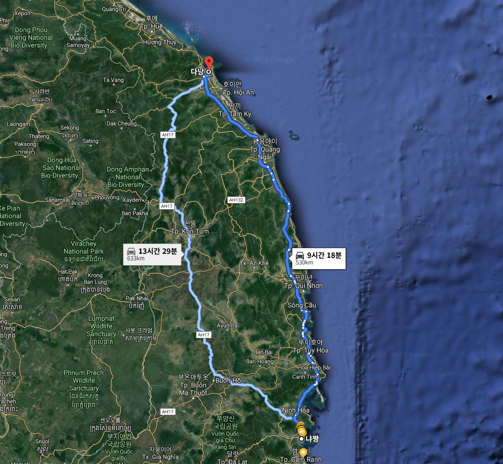 나트랑여행에 다낭도 가보고 싶다면 기차나 버스를 이용해야 합니다. 예전에는 국내선항공도 있었는데 제가 예약하는 사이트에서는 노선이 보이질 않네요 ~