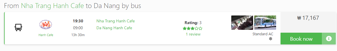 일단은 예약가능한 기차와 버스 교통편만 안내해 드릴게요 ~ 나트랑에서 다낭가는 버스는 13시간 정도소요, 최저가 16,517원 나트랑에서 다낭가는 기차는 9시간 30분에서 10시간 30분정도 걸리며, 최저가 19,432원 ~ vip sleeper x4 좌석 198,686원 ㅋㅋㅋ 입니다.