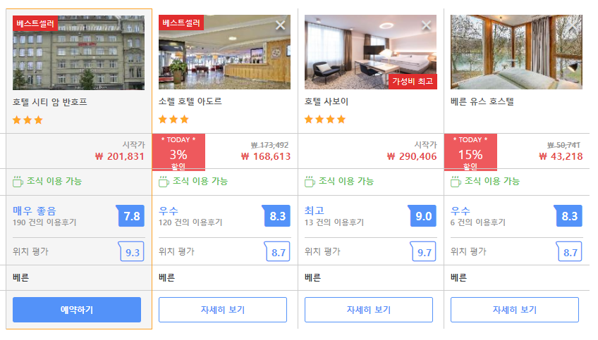 스위스 베른중앙역 앞에 있는 베른물가 대비 저렴한 20만원대 호텔