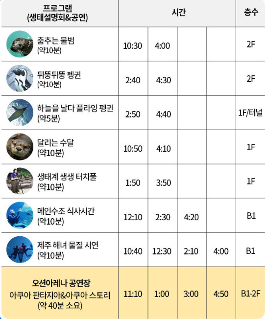 가기전에 미리 알고가자! 아쿠아플라넷 제주를 알찬 프로그램 이용안내