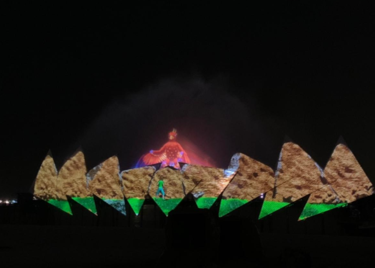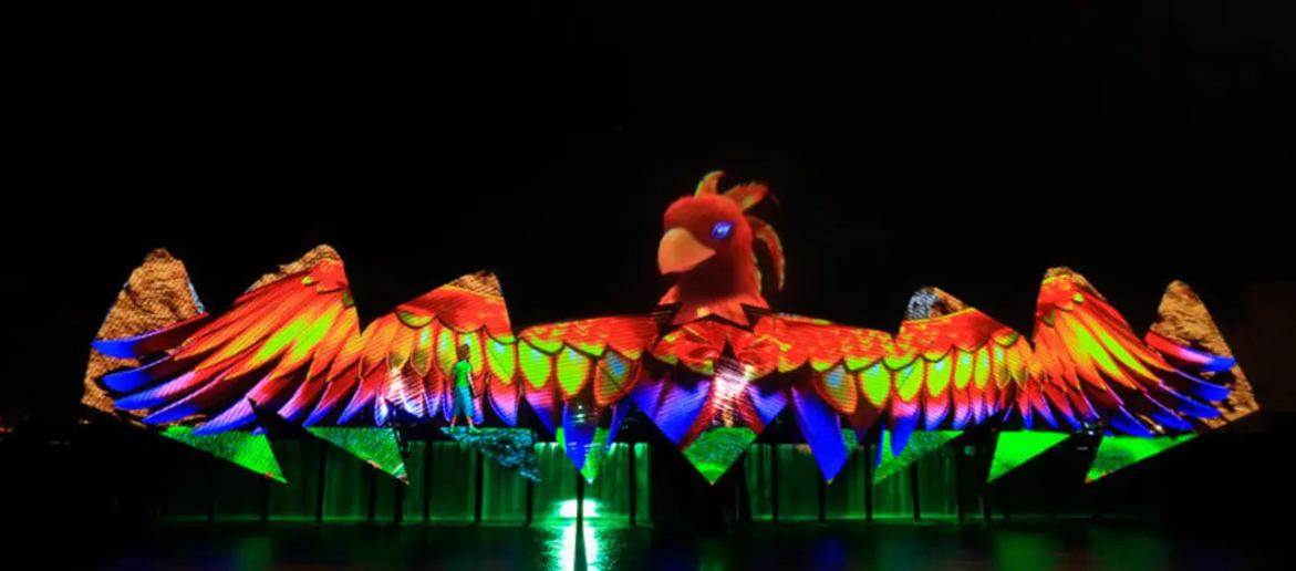 공연은 신화에 나오는 새처럼 생긴 샤바즈와 그의 두 인간 친구들이 여행하면서 생기는 에피소드들을 담고 있습니다. 100억 달러가 투자된 약 20분간 대형 워터 스크린에서 펼쳐지는 매혹적인 비주얼과 웅장한 음악을 놓치지 마세요 ~~