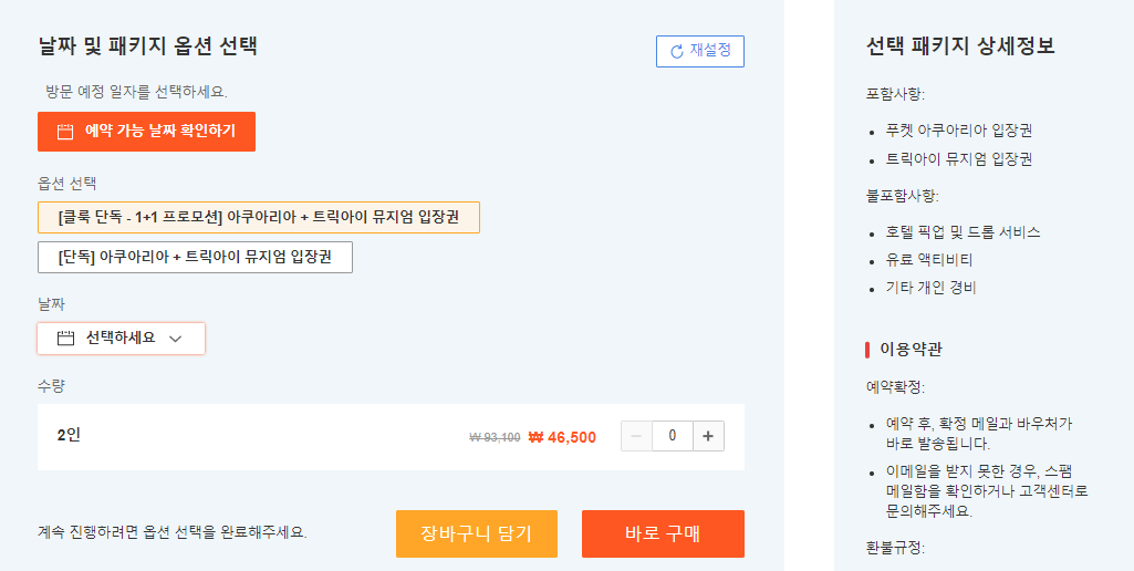 만 0-2세 영유아는 티켓을 구매한 성인 또는 보호자와 동반시 아쿠아리아 및
