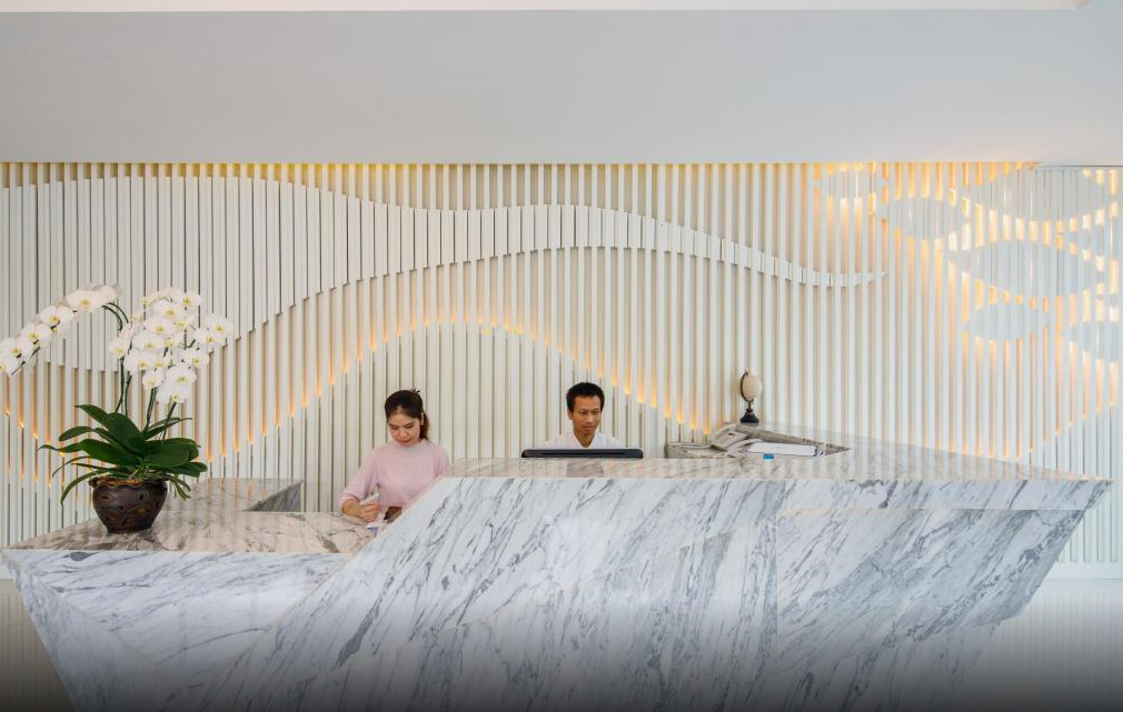 신축호텔에 직원들도 친절하고 객실상태 훌륭하나 저희가 묵었던방은 샤워실 배수 및 물온도 조절이 제대로 안됨. 침구도 훌륭하나 배개가 좀 높아서 예민하신분들은 잠자리가 조금불편할수도 있음. 위치는 시내에서 조금떨어져 있으나 그랩이용하면 요금도 싸고 이동거리도 15분전후로 시내쪽 어디든 이동가능해서 별 불편함이 없음. 호텔내 식당 음식이 가격도 싸고 플래이팅 맛 다 좋아서 호텔내 식사 강추. 전체적으로 가격대비 아주 훌륭함!