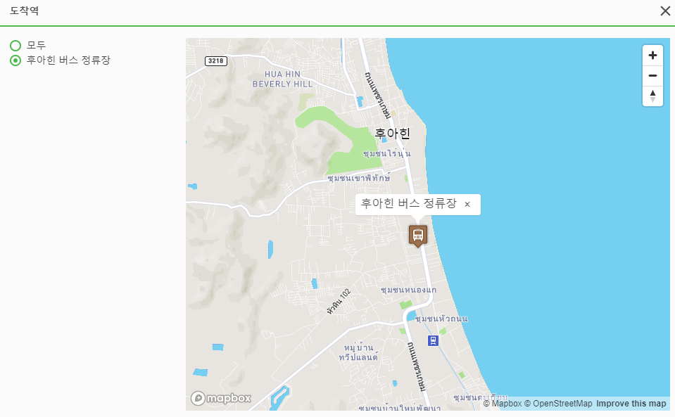 도착하는 곳은 후아힌 버스 정류장입니다.