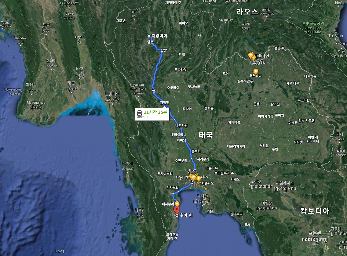 치앙마이에서 후아힌으로 이동하는 방법