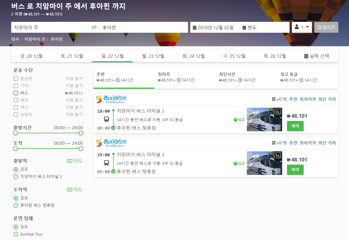 태국여행 // 치앙마이에서 후아힌으로 이동하는 방법(버스 교통편)