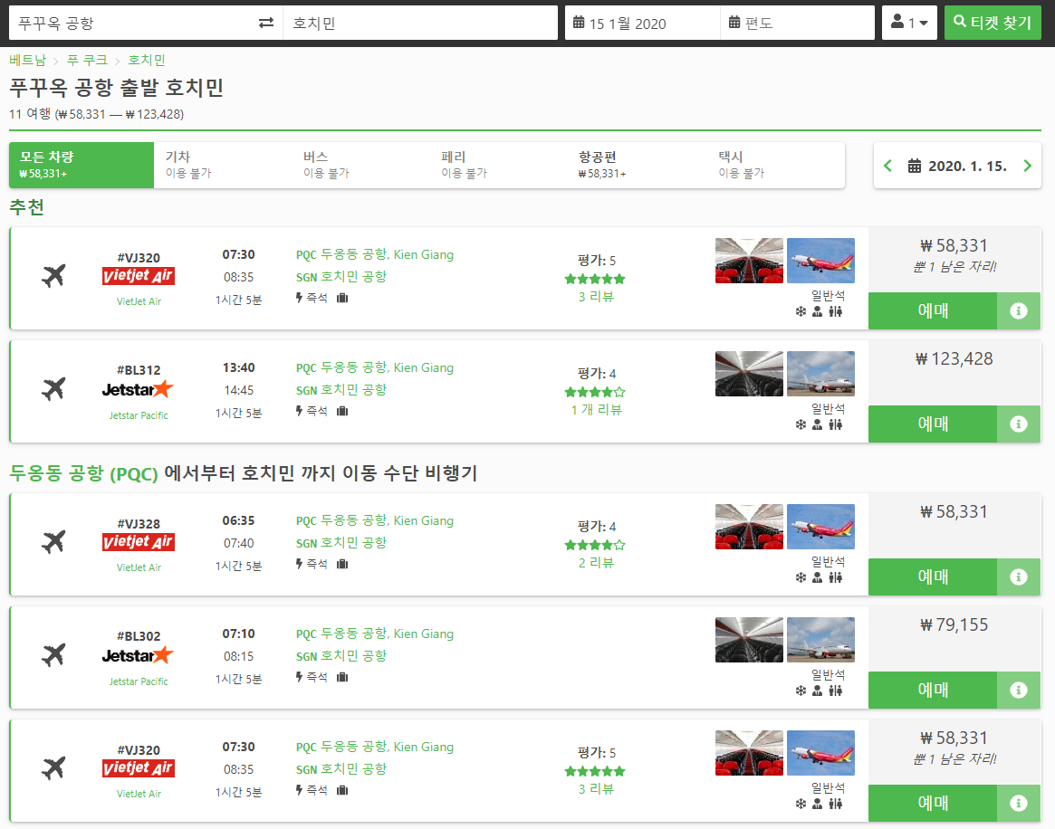 푸꾸옥에서 호치민으로 이동하는 교통편