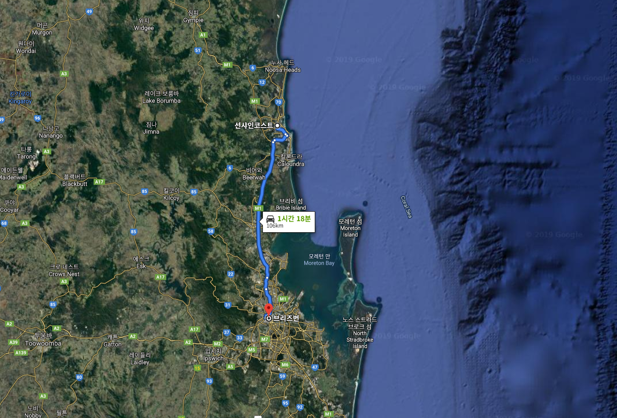 브리즈번에서 선샤인코스트 이동하는 교통편