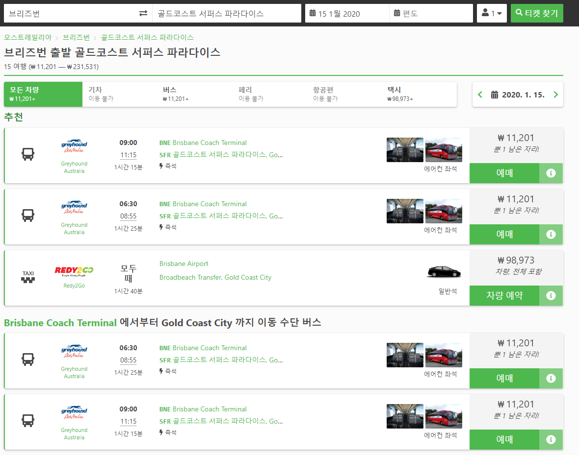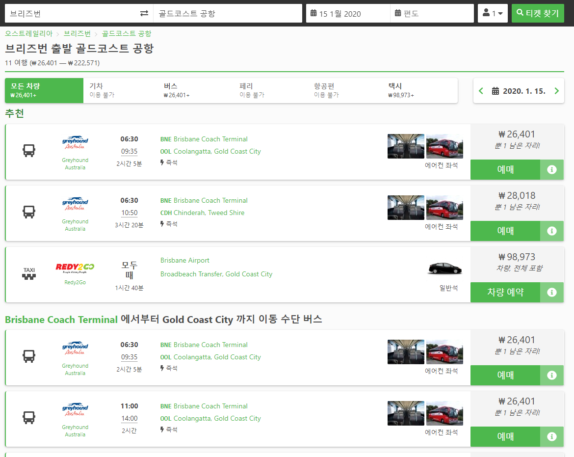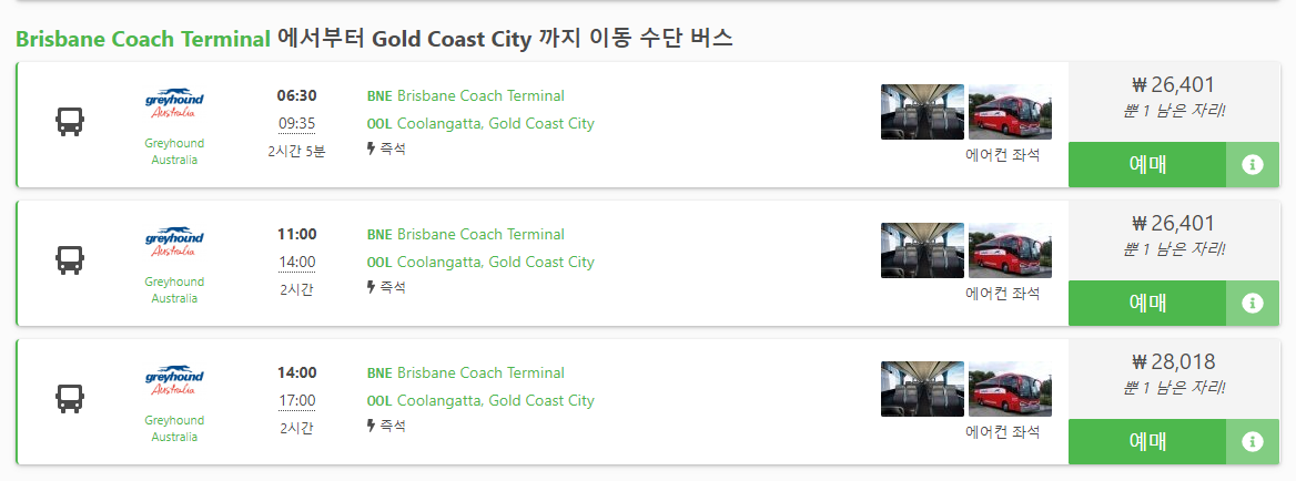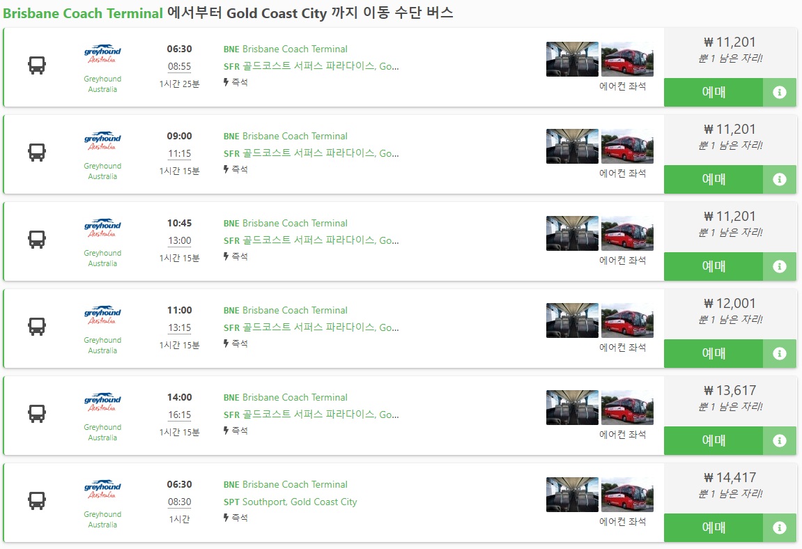 브리즈번에서 골드코스트 이동하는 버스는