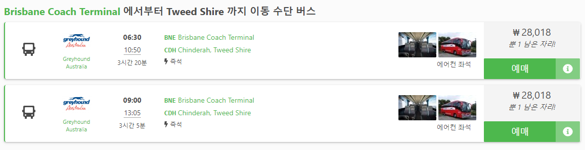 온라인으로 예약하실 수 있으며, 시간은 1시간에서 2시간정도로 시간 및 타는곳에 따라 약간씩 차이가 있습니다. 타는곳은 브리즈번 코치터미널(Brisbane Coach Terminal)에서 타실 수 있으며 내리는 곳은 골드코스트 중심가인 서퍼스 파라다이스, 골드코스트 공항근처 등으로 갈 수 있습니다.