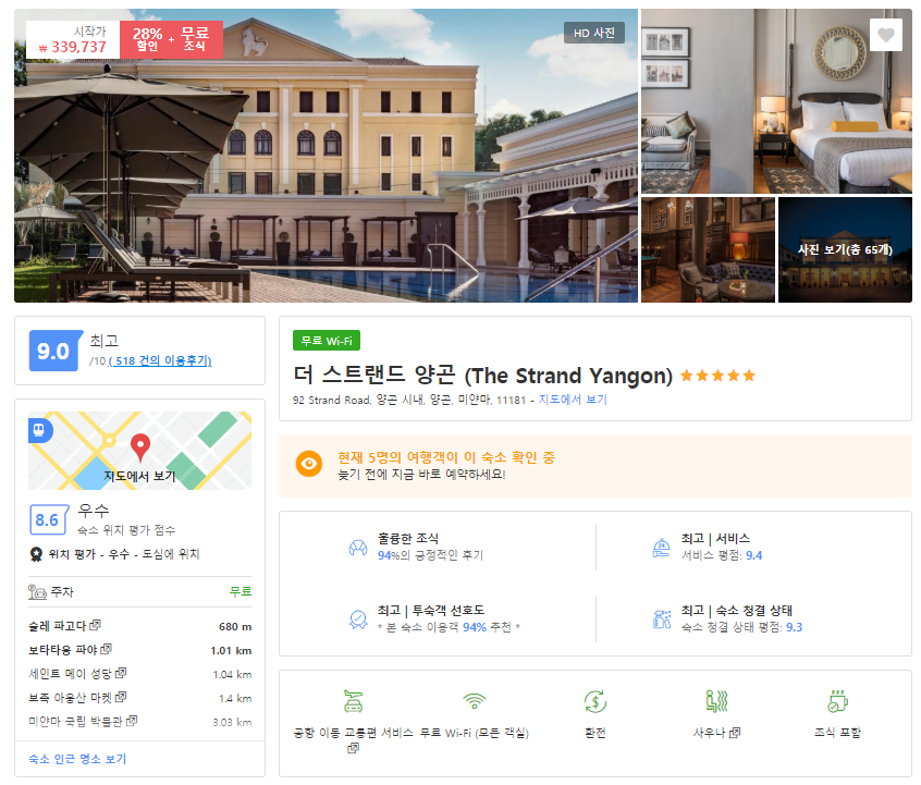 더 스트랜드 양곤호텔의 최저 가격대는 아고다에서 할인특가 가격으로 매일매일 변동되며 30만원대부터 다양하게 형성됩니다. 아고다 최저가를 확인하시려면 아래 링크를 누르시면 원하는 날짜의 가격대를 자세히 보실 수 있습니다.