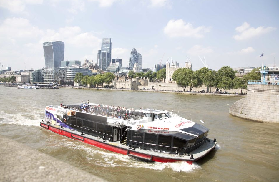 런던여행의 쉽게 할 수 있는 관광지 노선의 교통수단 자유롭게 타고 내릴 수 있는 템스강 관광크루즈
