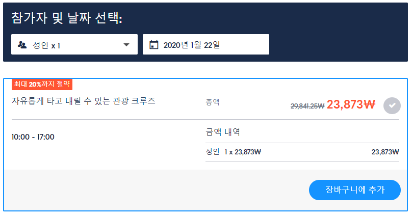 24시간 동안 자유롭게 타고 내릴 수 있는 크루즈 티켓