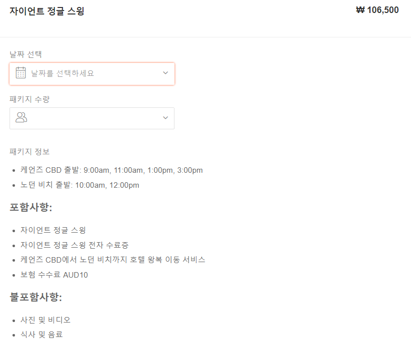 케언즈현지투어케언즈 자이언트 정글스윙 예약 자세히 보기
