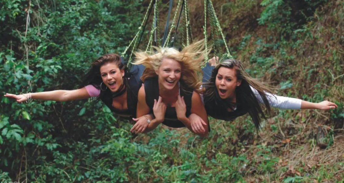 45미터 상공으로 올라가 스릴만점의 스윙을 경험해 보세요 ~스윙이 멈추면 하네스를 풀고 안전하게 땅에 착지합니다. 커언즈 자이언트 정글스윙은 친구들, 가족과 함께할 수 있으며,최대 3명이 함께 스윙에 탑승하며 스릴을 공유하며 추억을 만들수 있습니다.