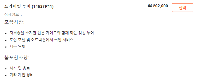 픽업 서비스는 프라이빗 투어 패키지 예약시에만 제공됩니다.