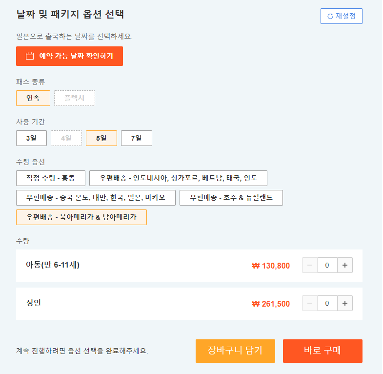 일본 입국 전, 클룩에서 JR 패스를 예약하세요. 예약시 일본으로 출국하는 날짜를 선택하고, 추가 정보를 입력하세요. 교환권은 우편 배송을 통해 수령하거나 또는 직접 수령하시기 바랍니다.