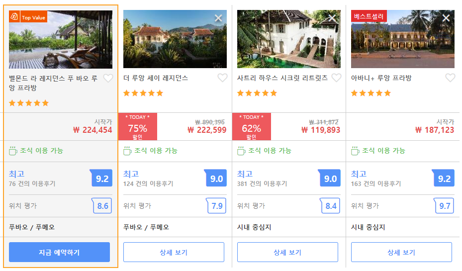 벨몬드 라 레지던스 푸 바오 루앙 프라방 (Belmond La Residence Phou Vao)의 최저 가격대는 아고다에서 할인특가 가격으로 매일매일 변동되며 20만원대부터 다양하게 형성됩니다. 아고다 최저가를 확인하시려면 아래 링크를 누르시면 원하는 날짜의 가격대를 자세히 보실 수 있습니다.