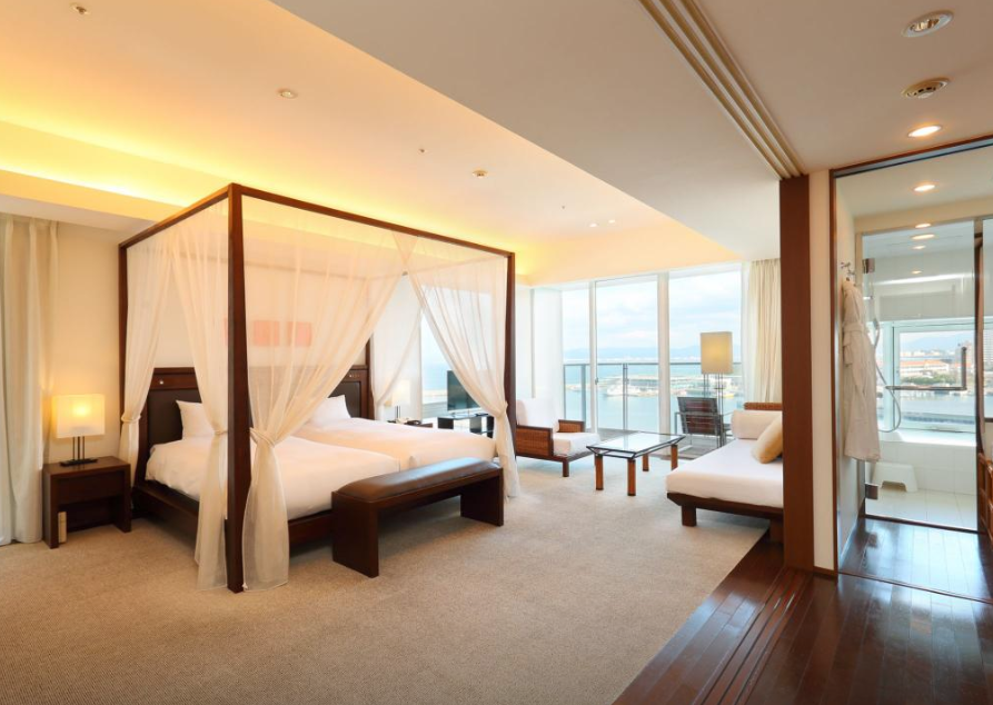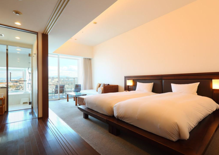 모든방이 오션뷰, 일반 후쿠오카 호텔 룸보다 1.5배 이상 큼. 가격대비 룸 컨디션 좋음! (화장실에서 살짝 냄세가 나서 별 하나 감소함), 화장실 큼! 28인치 24인치 22인치 캐리어 동시에 열고 짐 정리 할 수 있음! 헐리우드 트윈 침대에 소파가 다른 호텔 소파베드 크기라 1인은 거기서 자면 됨! 난방상태 매우 훌륭!(후쿠오카 유후인 통틀어 가장 따뜻하고 석유냄세 안나고 따뜻한 룸. / 위치는 바로 옆에 아울렛 있어서 쇼핑 할 수 있는 점과 식당가와 푸드코트에서 다양한 먹을 걸 먹을 수 있고, 아이들 오락실과 관람차 등을 태울 수 있어서 좋음. 단 호텔에서 중심가까지 약 20분 정도(렌트카 기준) 소요됨. 렌트카 없으면 묶을 수 없음(동선 엄청 길어짐. 버스타는곳 매우 멈) / 아침 식사가 비쌈(1인 2만원 정도, 아이도 1만원) 별로 먹을 건 없음 / 아침에 근처에 편의점 없음(정문까지 가야함-약 400m) /아침 해뜨는 모습과 석양 그리고 새벽 야경 매우 훌륭함! / 직원 서비스 최고임! 렌트카 사고 대응을 거의 다 도와줌! / 주차비 무료인 점도 최고임! 가격대비 매우 만족스러운 숙소!