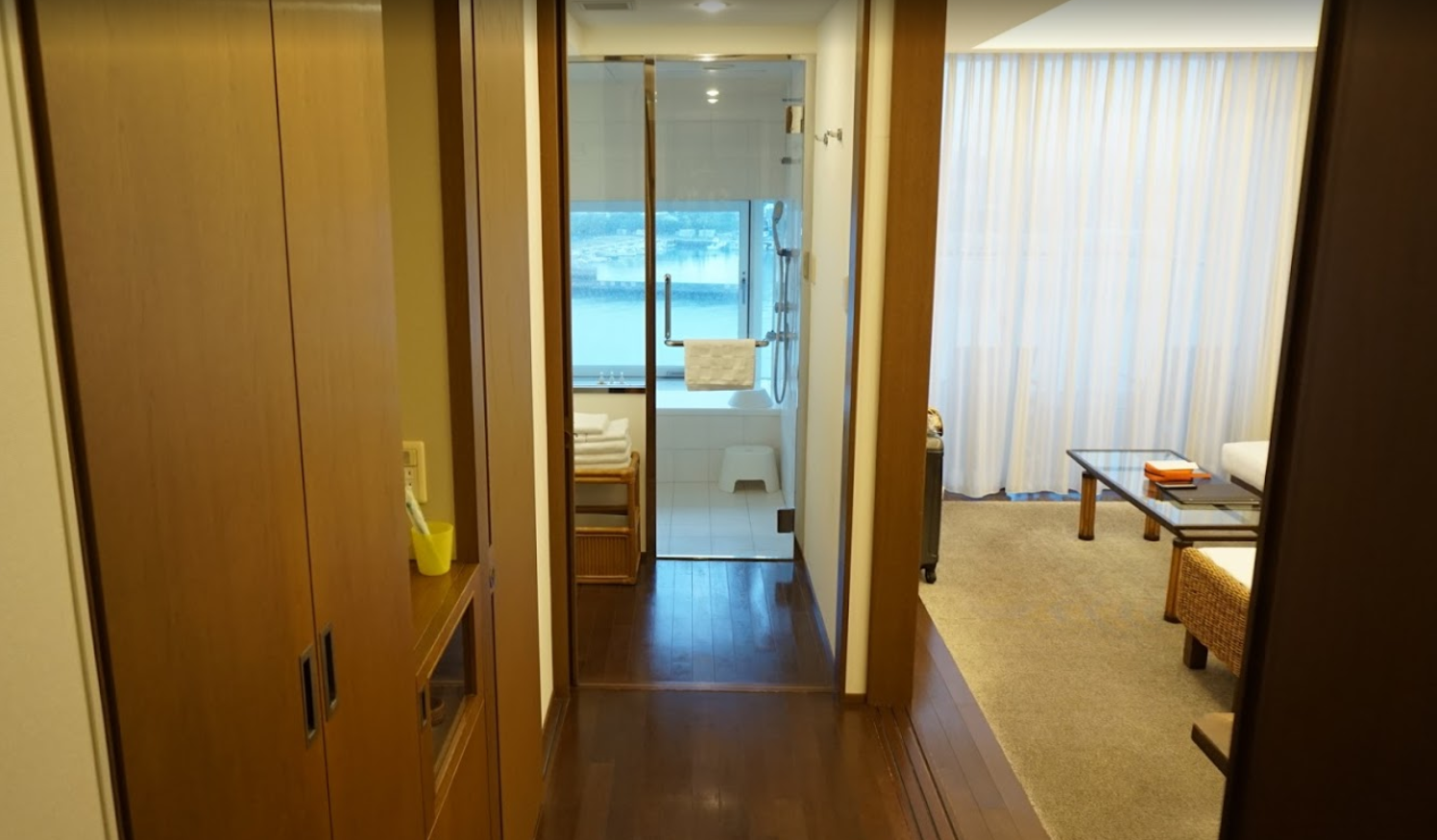 혼자 여행/조용함/룸서비스 메뉴가 다양하지 못해서 아쉬움/룸 청소 후 문을 닫지 않은채로 방치하여 불안했음/방음은 좋지 않음/모든 객실이 오션뷰로 뷰가 환상적/일본 호텔답지 않게 모든 시설이 넓고 쾌적하였음/욕조가 있어 정말 좋음/한국어 가능 직원이 있어 편리함/2층 리셉션 옆으로 아울렛 연결 통로가 있어 좋았음/2층 리셉션에서 쇼와버스 할인 쿠폰을 받을 수 있음