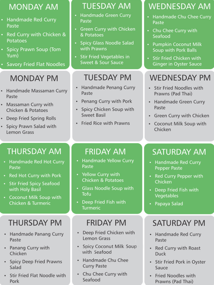 코사무이 타이쿠킹 클래스일정:
