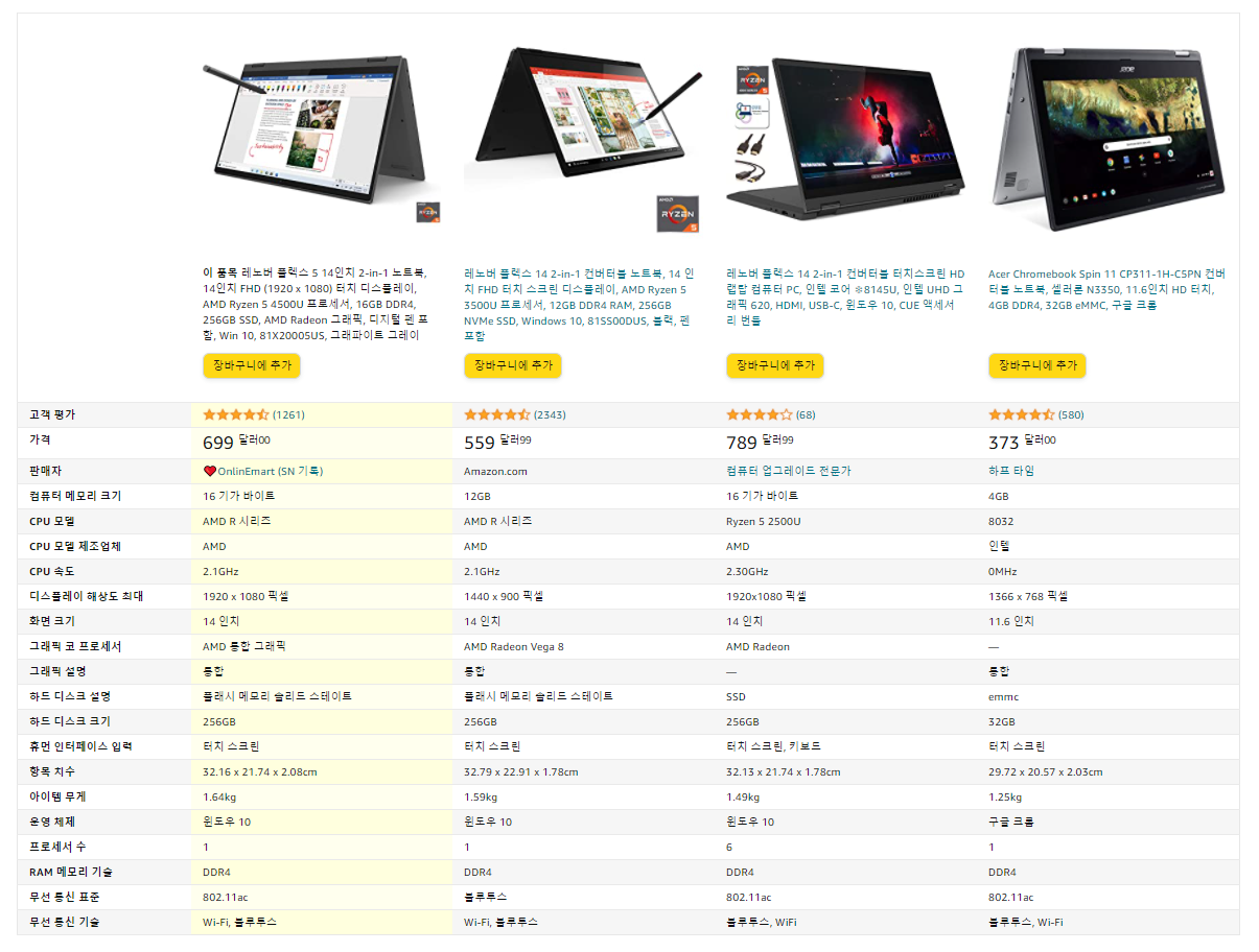 레노버 플렉스 5 14인치 2-in-1 노트북은 아마존에서